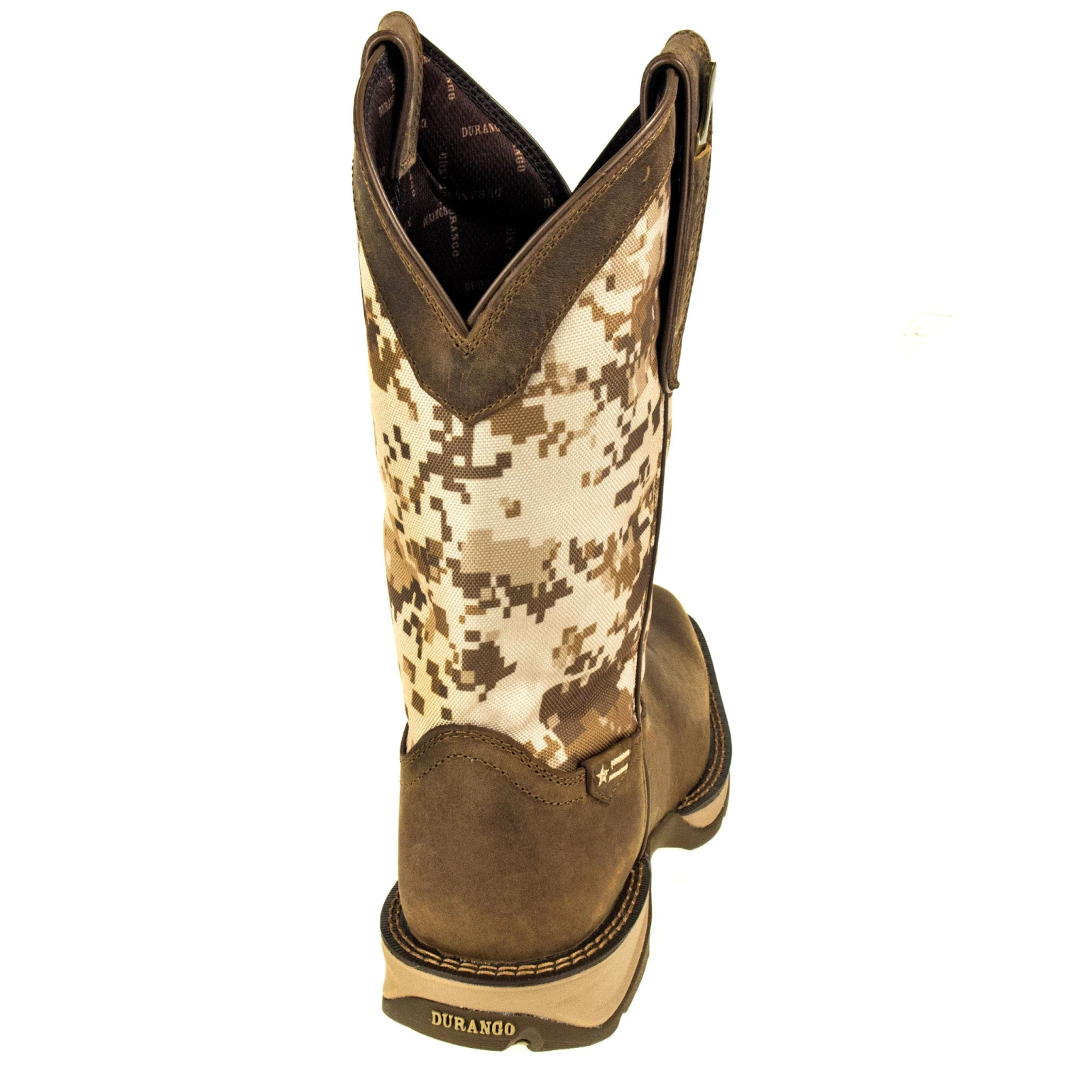 For intense comfort, quality, and style, choose these Durango Men’s Desert Camo DDB0166 Rebel Western Pull-On Boots today. They can be yours here at Working Person’s Store.