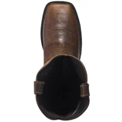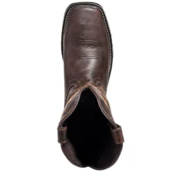 With excellent slip resistance, that means you’ll be on your feet more often. And when you’re on your feet for far too many hours during the work day, you need excellent cushioning underfoot. Justin added their J-Flex Flexible Comfort System insoles to these 11-inch cowhide boots, and these offer enhanced cushioning and support from below. This special system returns energy to your feet with every step you take. The cushioned insoles and triple-density insole boards will feel broken in from the start. Surrounding that exceptional comfort from within are rugged, clean ivory cowhide leather uppers that are 11 inches in height. These bad boys are embellished (because why not?) by a retro-themed yellow, red, and green stitch pattern. The rich brown square toe vamps add even more appeal to the design. The foot of the titanium white boots is a copper kettle cowhide, and these steel toe leather boots are ready to bring comfort and durability to your day.