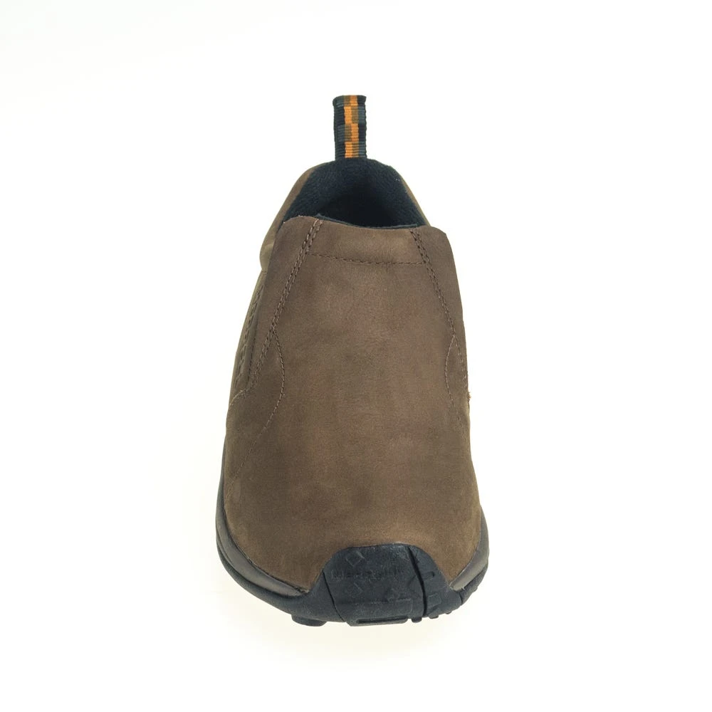 By now, you probably think you have the shoe thing covered. Hiking boots, fishing waders, tennis shoes, even a pair of snazzy loafers just right for escorting the occasional date around town. But if you don’t have the ~Merrell Men’s J63839W Brown Nubuck Jungle Moc Slip-On Shoes, there’s still room to step up your footwear game.