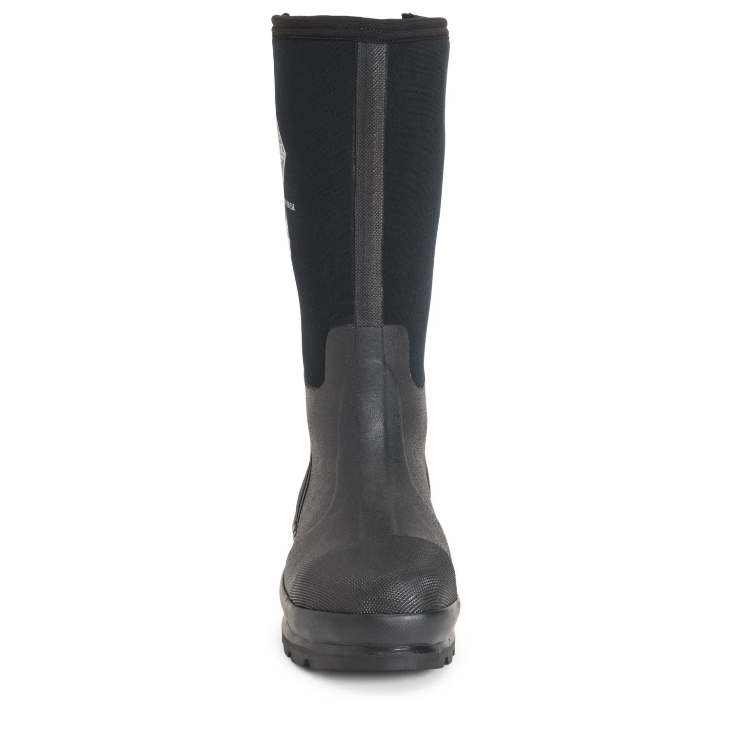 If you like some of the Original Muck Boot Company’s classic designs, you’ll love these ~Muck Men’s MCXF STL Black Chore Classic Tall Gusset Wide Calf Steel Toe Waterproof Boots. This pair is a roomier version of the classic chore work boot design, and it features Muck’s Extended Fit with a gusset for easy on and off action. You can extend these black waterproof boots up to 3-5 inches. They’re also 100% waterproof and provide steel toe safety to guard you against workplace hazards.