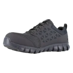 In addition to the water-resistant nearly one-piece sporty mesh uppers, the Skechers work shoes have been electrical hazard (EH) safety tested to meet the ASTM F2892-11 rating for safety around open circuits under certain dry conditions. Electrical shock is no laughing matter, so get serious with these men’s EH shoes. A 1-inch heel height and slip-resistant rubber traction outsoles make sure you have stable steps, and there are FlexSole lightweight flexible shock-absorbing midsoles for enhanced underfoot support.