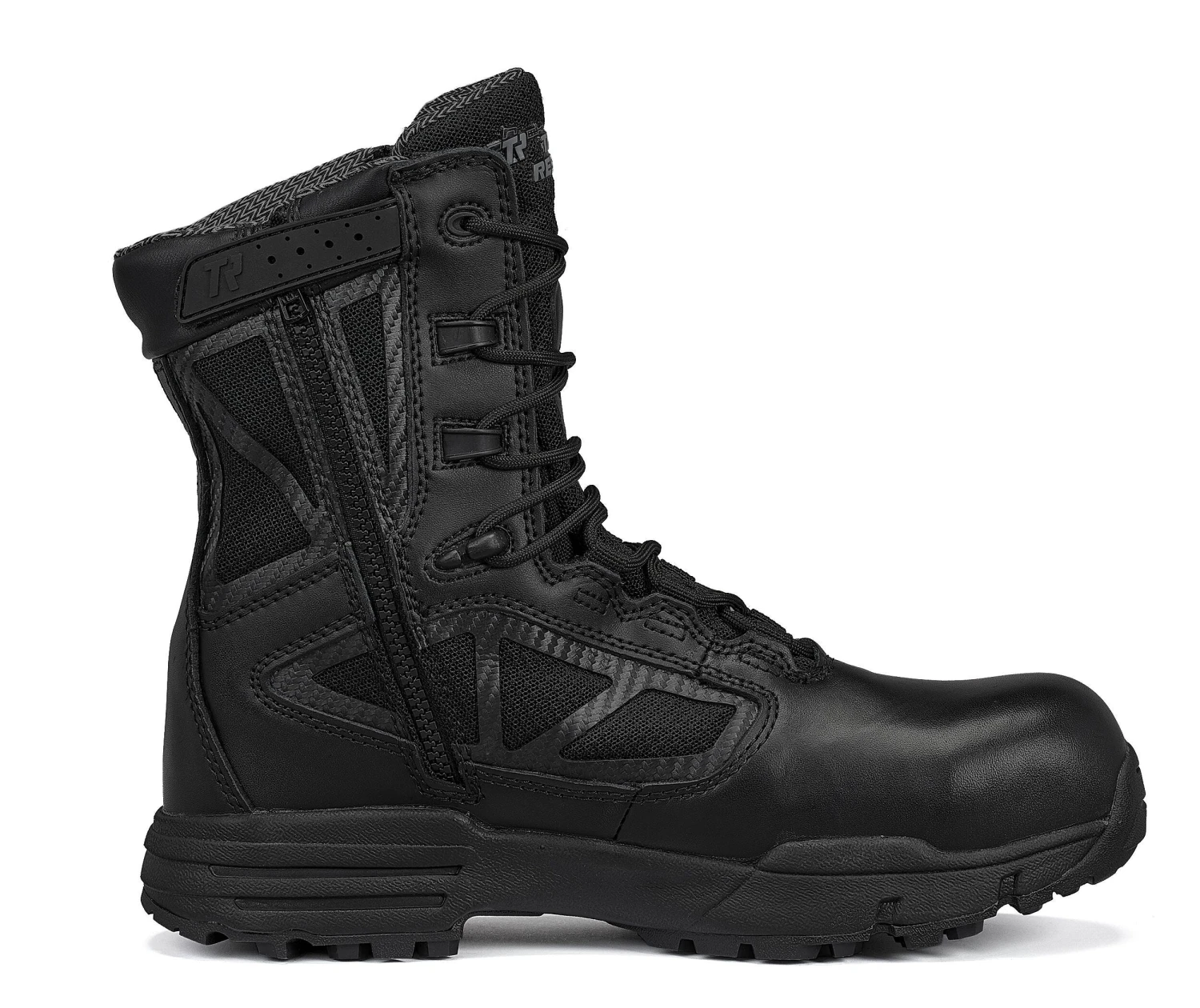 Exclusive long-wearing StreetNavâ„¢ rubber outsoles are non-marking, oil-resistant, and slip-resistant for reliable traction. These are unique cleat and lug outsoles. Highly-cushioned midsoles within the Tactical Research side-zip boots are shock-absorbent, too. A “Hot Fusion” exo-skeletal frame gives you structural support at a minimal weight for lightweight protection. Double-density molded and removable insoles make sure your feet have proper cushioning, and you can get into these waterproof safety toe boots with ease thanks to the side zipper entry points with molded security overlays.