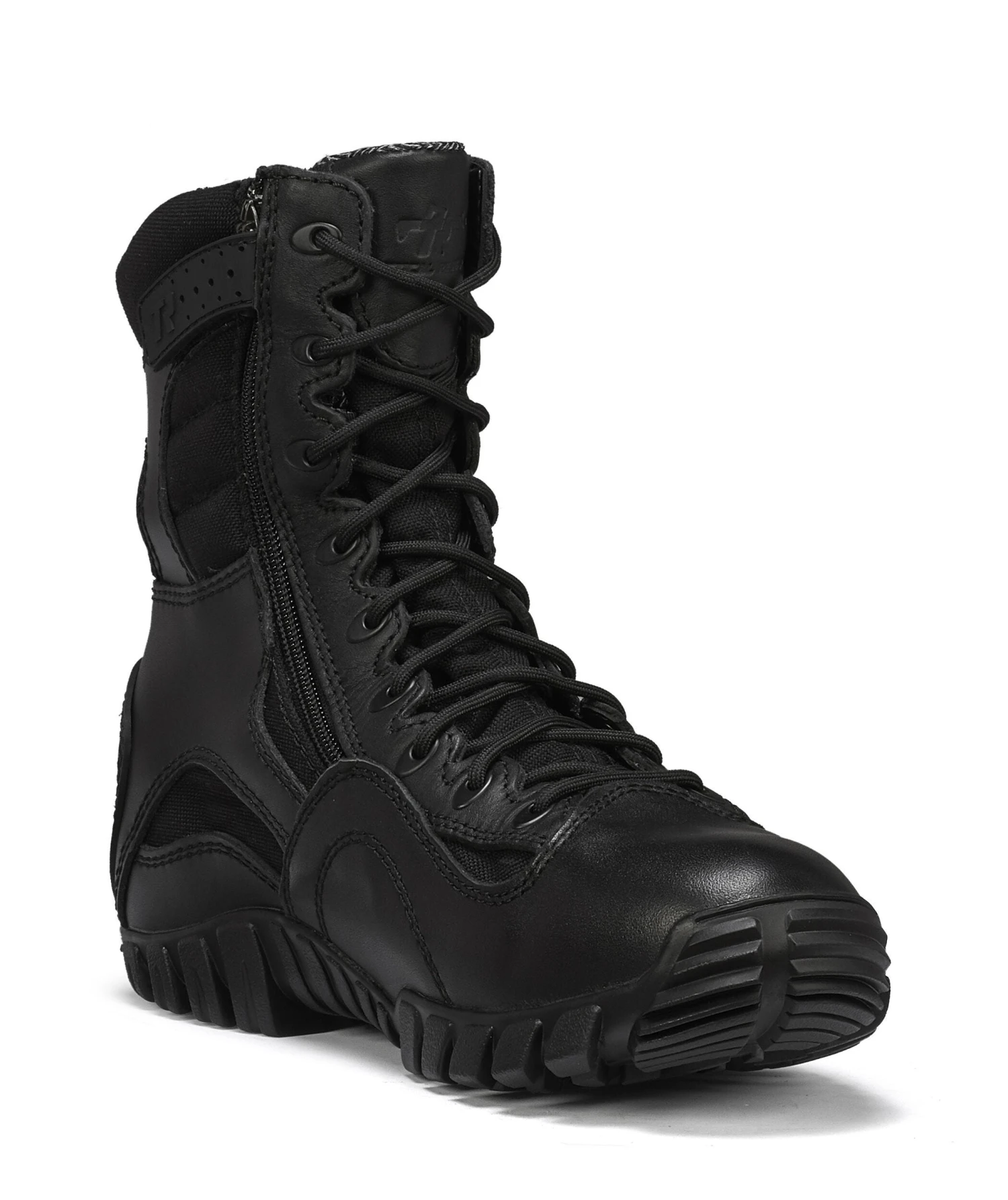 These men’s side-zip boots are super lightweight to help you stay on your toes on a wide variety of terrain. The 100% rubber Exclusive Vibram® “IBEX” outsoles are built to keep you upright, too, as their tread pattern is specifically created to handle rugged surfaces. A low profile sole reduces the overall weight of the waterproof duty boots, and this improves your mobility as well. Sharp angled lugs and defined heels maximize traction while rappelling bars on the outsoles extend the life of the men’s work footwear. Your workdays aren’t always easy, so get the Tactical Research Khyber design that’s constructed for hardworking people like you.