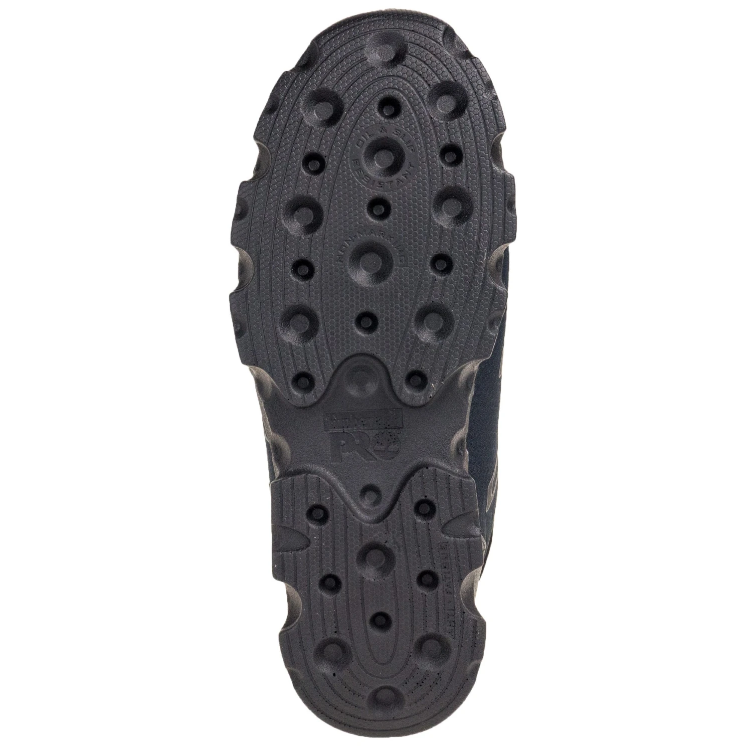 Inside these heavy-duty black EH boots, antimicrobial odor control helps keep things fresh and clean feeling. The anti-fatigue technology made famous by Timberland PRO uses a unique design in the insoles to absorb the shock of impact with plenty of cushion for your feet. This energy absorbed is then returned to help “spring” your feet forward, reducing the amount of energy you need to use to lift your feet with each step. By reducing the overall weight of the men’s safety toe boots in every way possible and adding in this springing technology, you can enjoy a noticeable difference in your stamina throughout your work day.