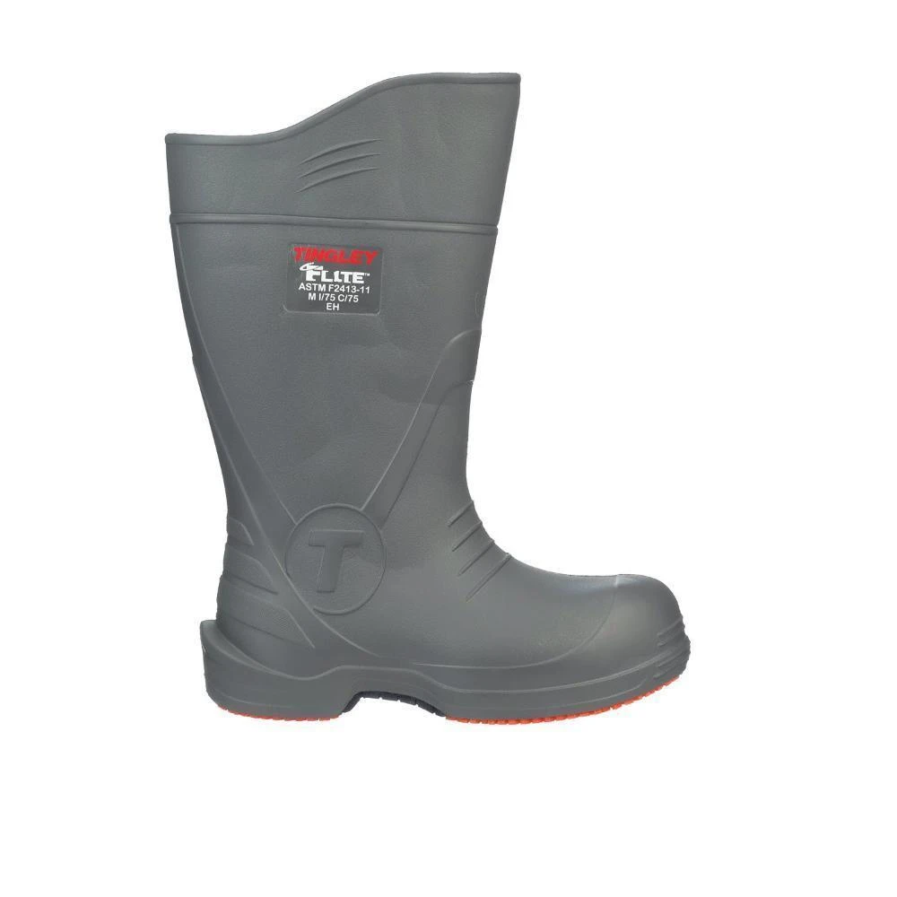 You don’t have to shoot for the stars to get high-quality safety toe footwear…Working Person’s Store has you covered! With these durable ~Tingley Unisex 28259 Grey Orange Flite 15 IN Composite Toe PVC Boots on your feet, you’ll have composite safety toe caps that meet ASTM F2413 M/I/C EH* and will not set-off metal detectors either. This rugged toe protection will guard your toes while you work. Tingley’s Flite® design is “A Revolution in Protective Footwear™.”